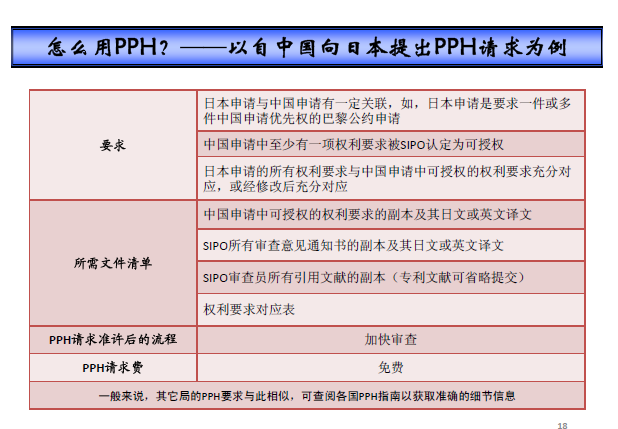 PPH項目是對國外申請的加快審查通道,具有可迅速獲得審查意見、降低申請成本等優勢,目前全球已有20多個國家和地區的專利審查機構開展了PPH項目,國外企業和專利代理機構也正在利用該機制,使其國外申請得到加快審查,越快通過審查意味著越早占領市場,因此PPH項目獲得了企業的廣泛好評。